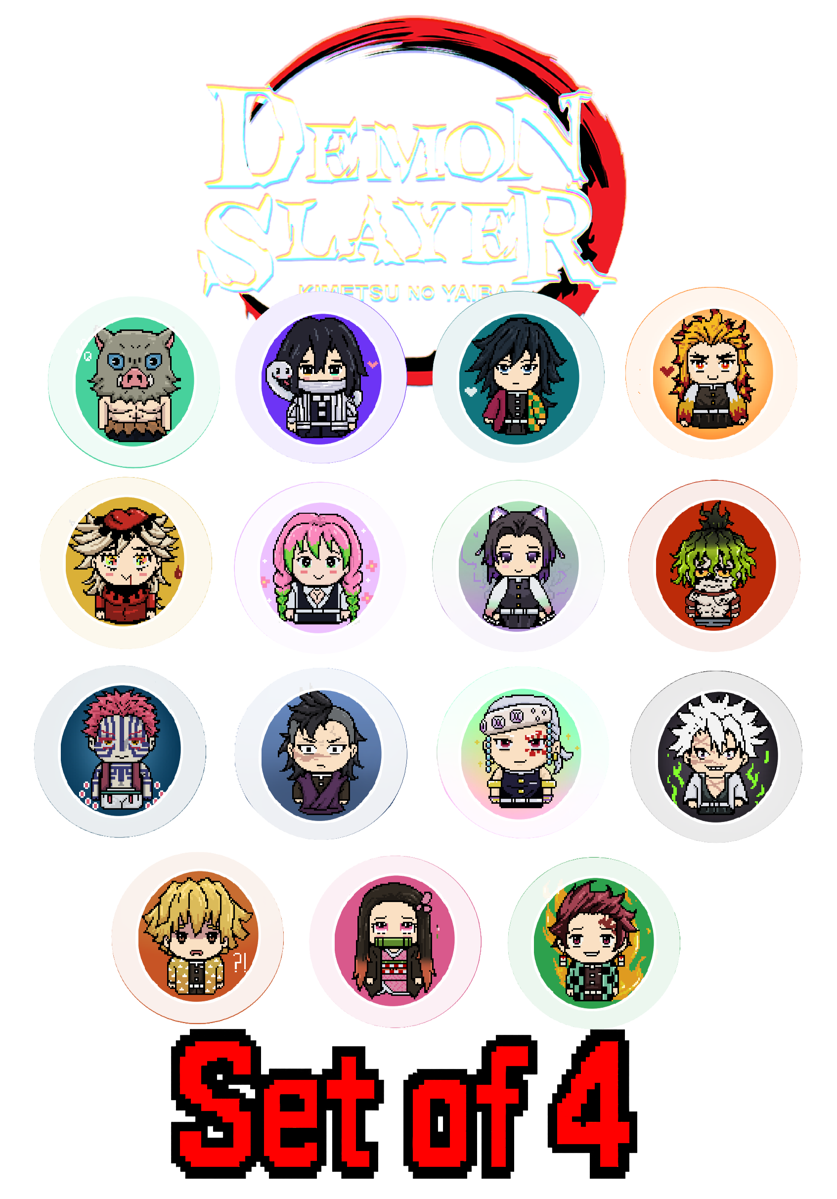 Demon Slayer Pixel Mini Pin Buttons [SET OF 4]